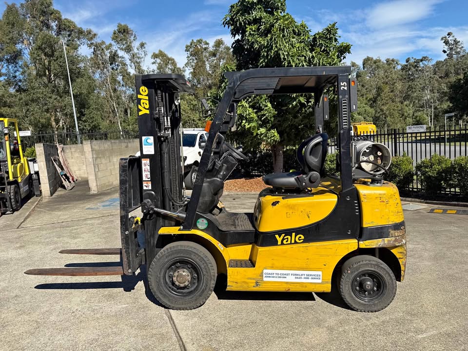Yale 2.5T with container entry mast. 4590mm lift height.